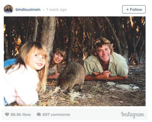 While millions of Steve Irwin fans celebrated the life of the late star of "The Crocodile Hunter" this weekend, perhaps the most touching tribute came from his 17-year-daughter, Bindi, whose Sunday post on Instagram declared him the "greatest Dad on Earth."