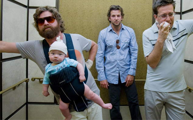 Most scenes with the baby in The Hangover used a set of twins but due to child labour laws, they often had to use a dummy!