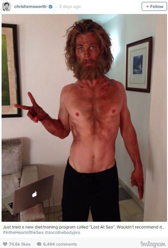 Hemsworth dropped 15kg for his part in the Ron Howard movie In the Heart of the Sea, the Moby Dick-inspired film due for release next week.