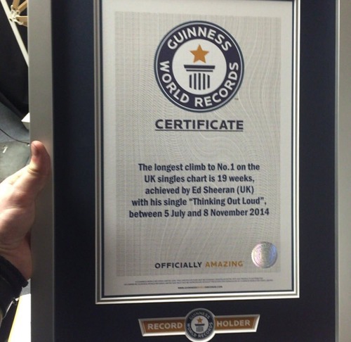 Turns out slow and steady DOES win the race! Ed Sheeran has shared his excitement at receiving his official record certification from Guinness World Records.