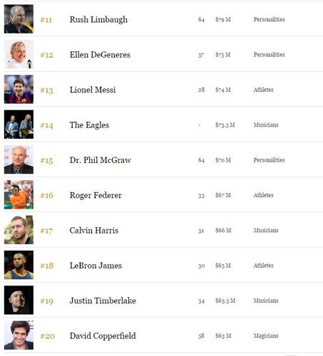 Forbes Highest Paid Celebs List Revealed