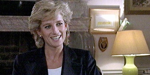 Princess Diana, laughs in this televison image, during an interview aired on the BBC Panorama programme when she admitted the affair with Hewitt.