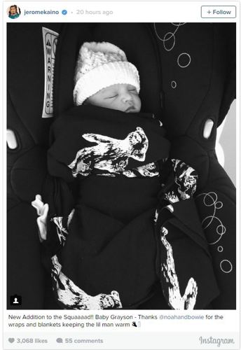 All Black Jerome Kaino and his wife Di have posted a photo of their new son Grayson, alongside a message reading: "New Addition to the Squaaaad!!"