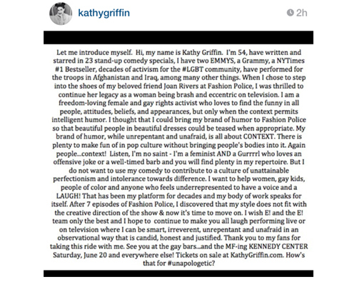 Kathy Griffin To Leave Fashion Police