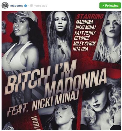 Madonna took to Instagram to reveal that she has called on some of the biggest pop stars in the world to star in her new music video for 'Bitch, I'm Madonna'.