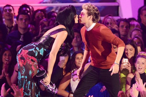 Katy Perry and Niall Horan kiss on stage at the 2012 MTV VMAs. Photo / GettyÂ