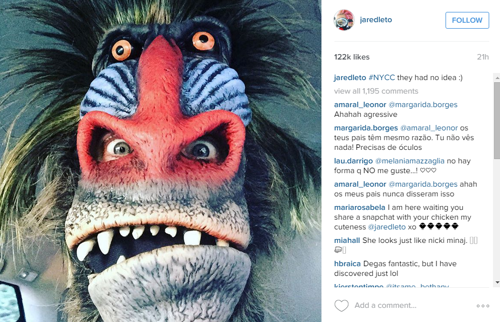 Ruffalo, who plays Hulk in The Avengers, and Leto, who will portray the Joker in next year's Suicide Squad movie, have since shared pictures of their disguises on Instagram.