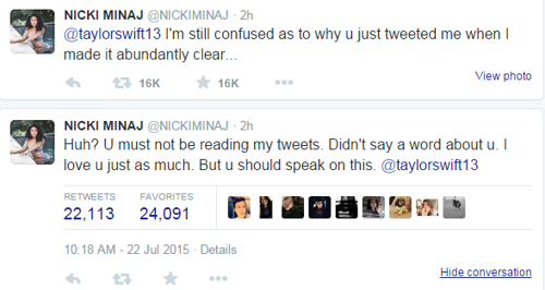 Minaj then claimed the tweets were not about Swift: