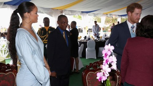 Prince Harry met one of Barbados' most celebrated daughters, pop star Rihanna - as he read a message of support from the Queen to mark the 50th anniversary of the nation's independence.
