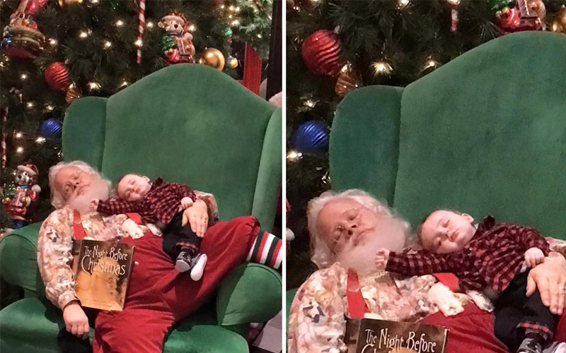 Baby Falls Asleep While Waiting In Line To See Santa But Santa Tells Parents Not To Wake Him