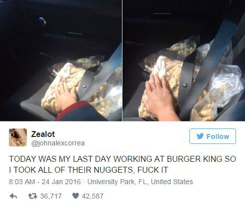 Guy Leaves His Job At Burger King & Steals All The Chicken Nuggets