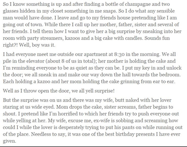He knew his wife was cheating, so he arranged a birthday surprise she will never forget