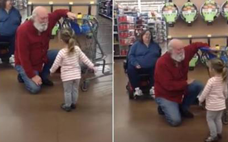Christmas came early for a little girl in America when she mistook a bearded man for Santa in a shop!