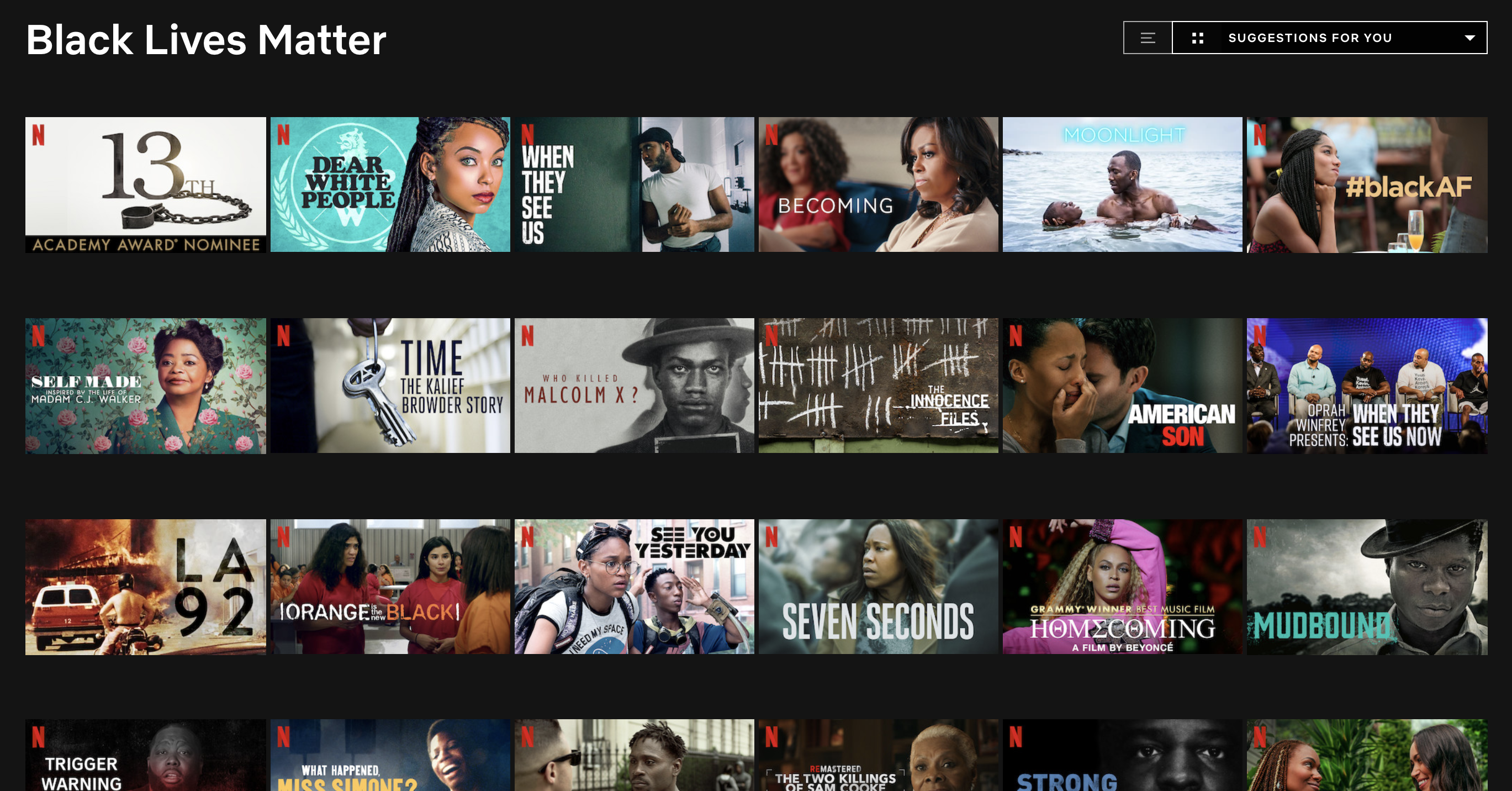 "When you log onto Netflix today, you will see a carefully curated list of titles that only begin to tell the complex and layered stories about racial injustice and Blackness in America."