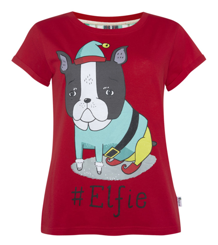 Maybe you have to be of a certain frame of mind to pick up on this, but apparently the dog's nose & cheeks form the base of a phallus, with the tip formed by the little festive cap.