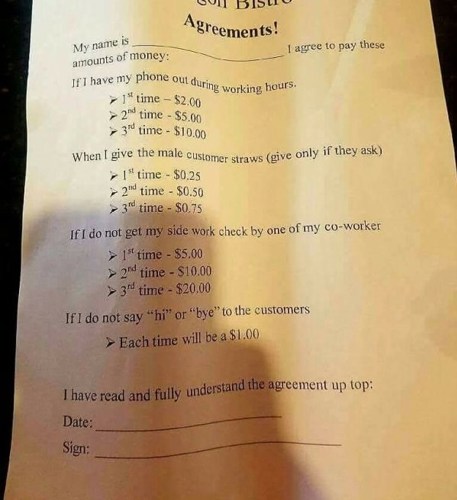Restaurant forces employees to sign an absurd working 'agreement'