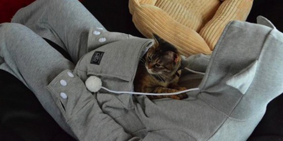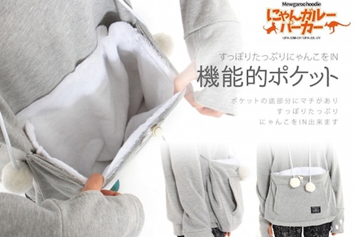 It's called the Mewgaroo Hoodie and comes with a kangaroo like pouch at the front your your cat to sleep in.