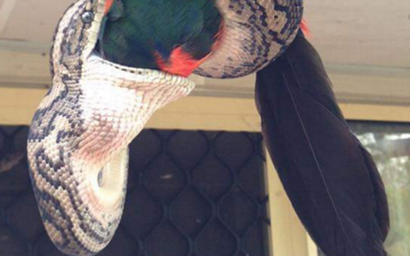 These Pictures Of A Carpet Python Swallowing A Parrot Whole Are Terrifying