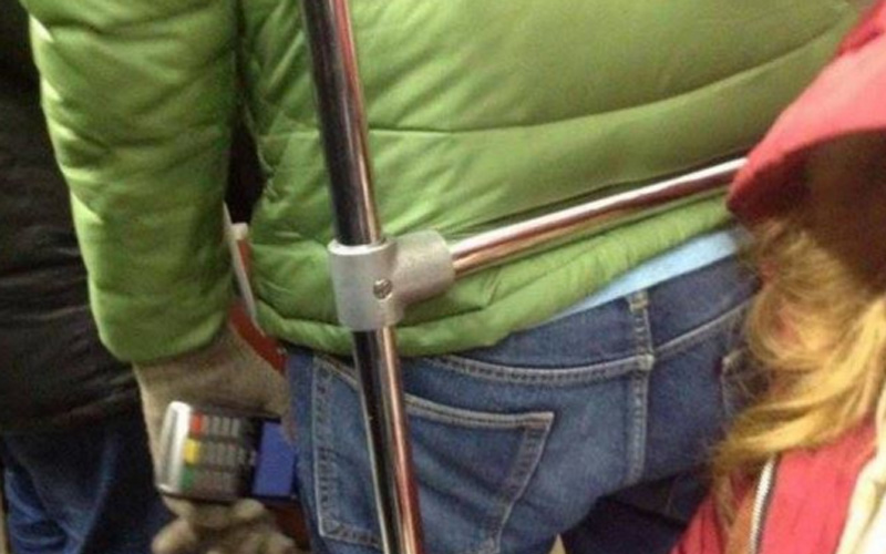 A man named Paul Jarvis posted the above image on Facebook. It shows a man on a train holding a Point of Sale (PoS) device.