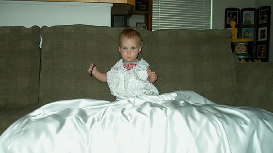 Brandy Yearous, has been photographing her little girl Allison in her wedding dress every year since she was one-year-old.